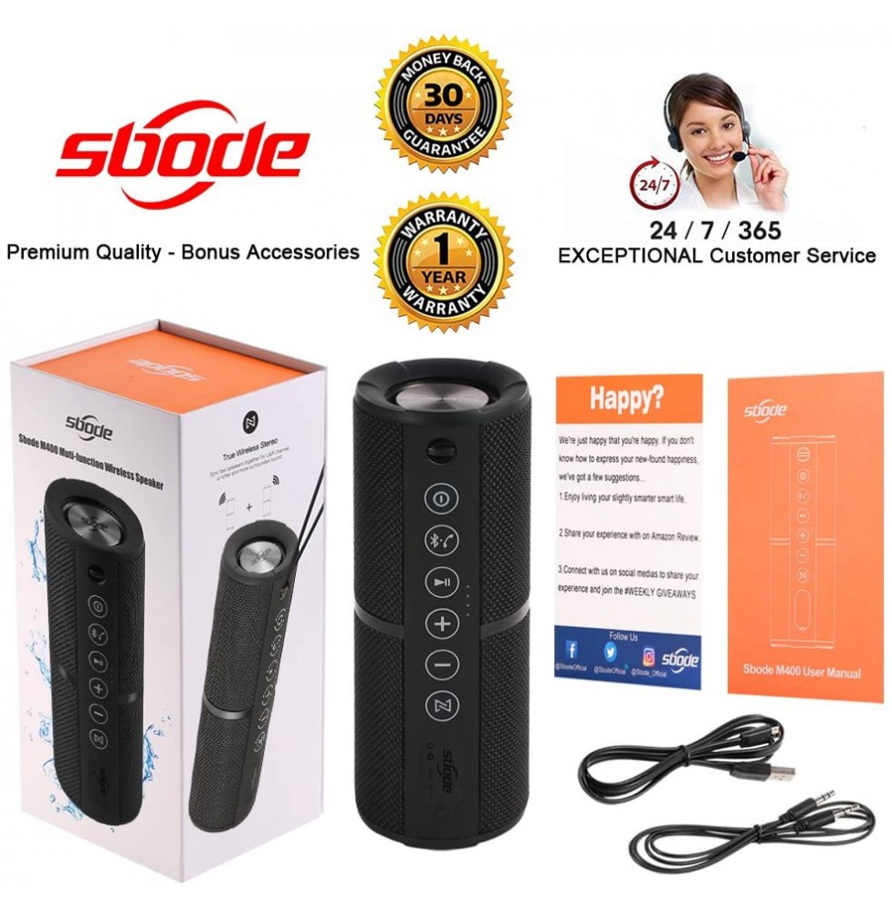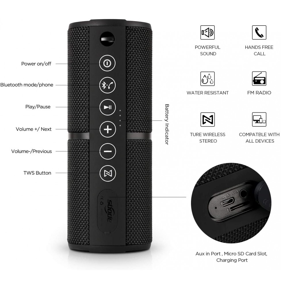 Sbode Bluetooth Speakers Portable Waterproof Outdoor Wireless Speaker Enhanced Bass, Sync Together, Built in Mic, TF Card, Auto Off, FM Radio for Beach, Shower & Home